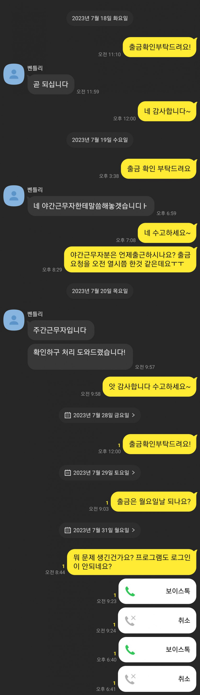 뽀또님의 댓글 뽀또 쪽지보내기 메일보내기 자기소개 아이디로 검색 전체게시물 쪽지보내기 메일보내기 자기소개 아이디로 검색 전체게시물 작성일 2023.08.01 18:04 출금이 하루 걸리는것 부터 에러였네요 출금이 하루 걸리는것 부터 에러였네요